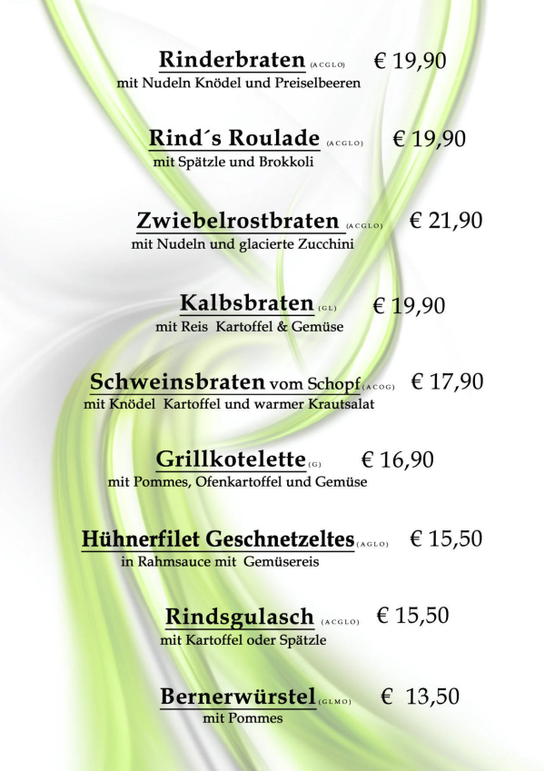 ....hier finden Sie unsere gesamte Speisekarte - von regionalen Produkten, Burger und natürlich extra Brat'l- bzw. Schnitzlvariations-Karte .....