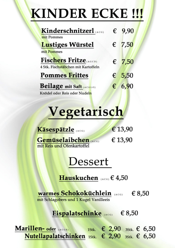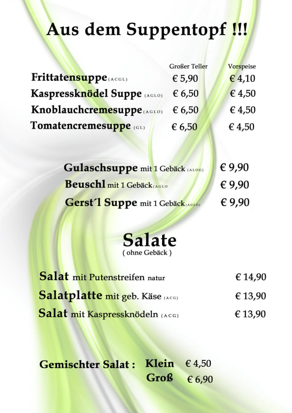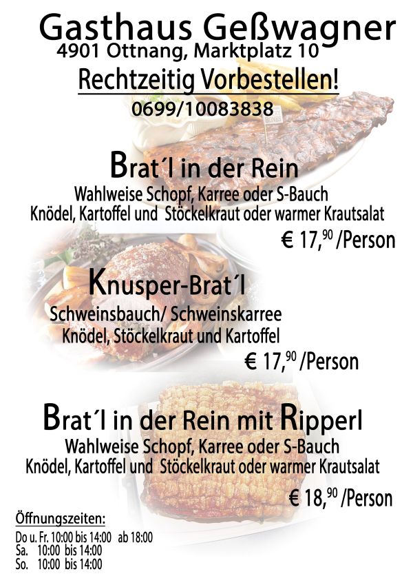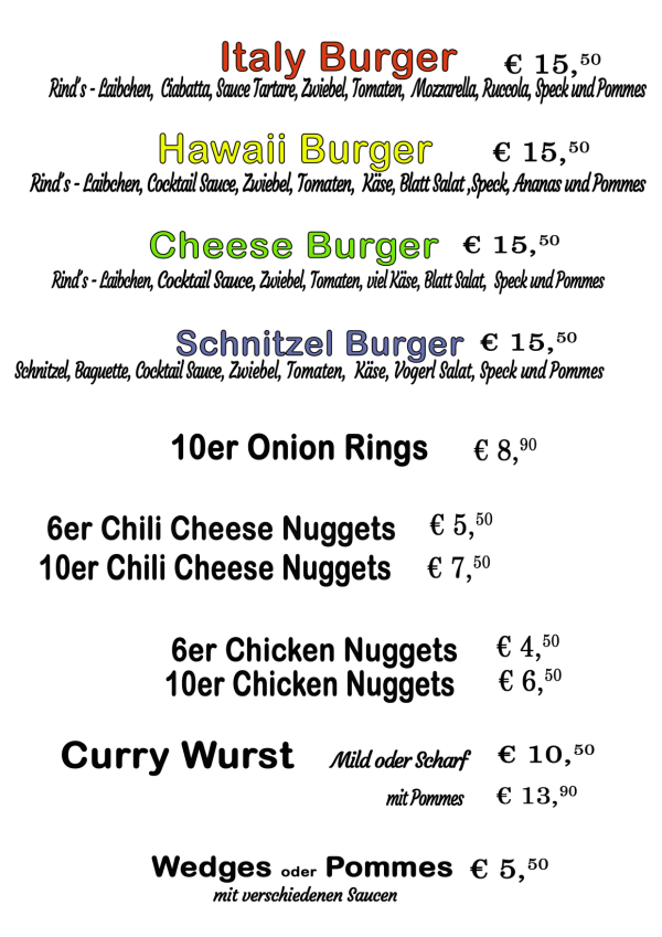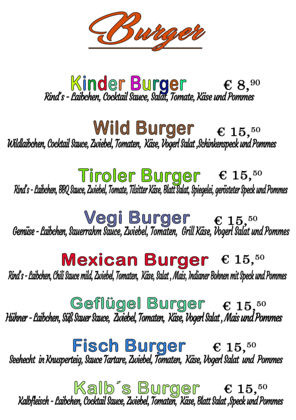 ....hier finden Sie unsere gesamte Speisekarte - von regionalen Produkten, Burger und natürlich extra Brat'l- bzw. Schnitzlvariations-Karte .....